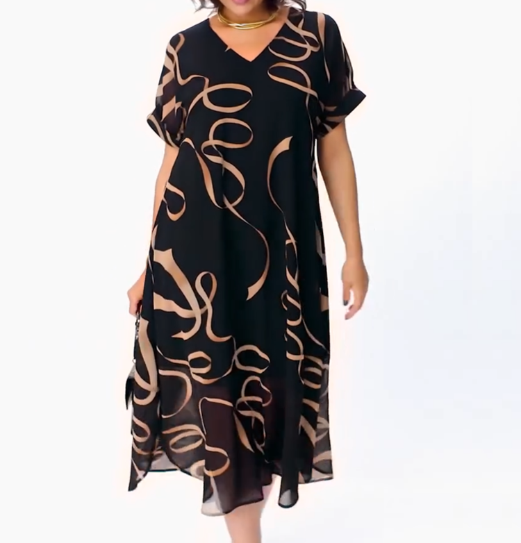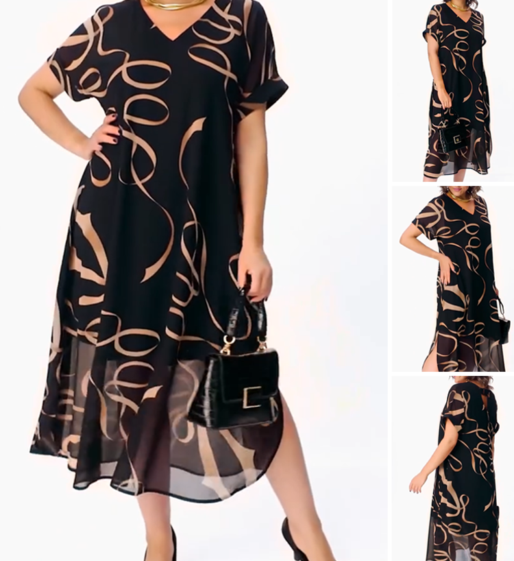 Pacchetto Include: 1×Fluido Scollo A V Abito Midi