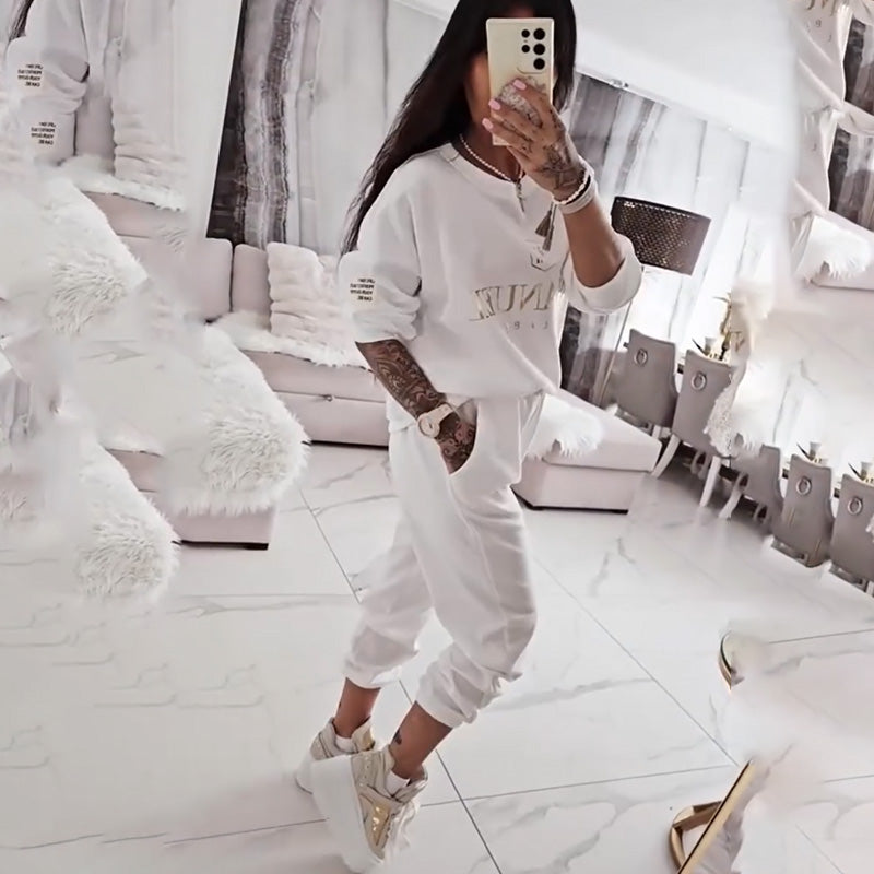 DESIGN CON STAMPA A LETTERE IN GRASSETTO - Le stampe con lettere in grassetto aggiungono un tocco di stile moderno e individualità al set. Questi dettagli accattivanti valorizzano l'outfit, permettendoti di esprimere il tuo senso della moda unico senza sovrastare il look complessivo.