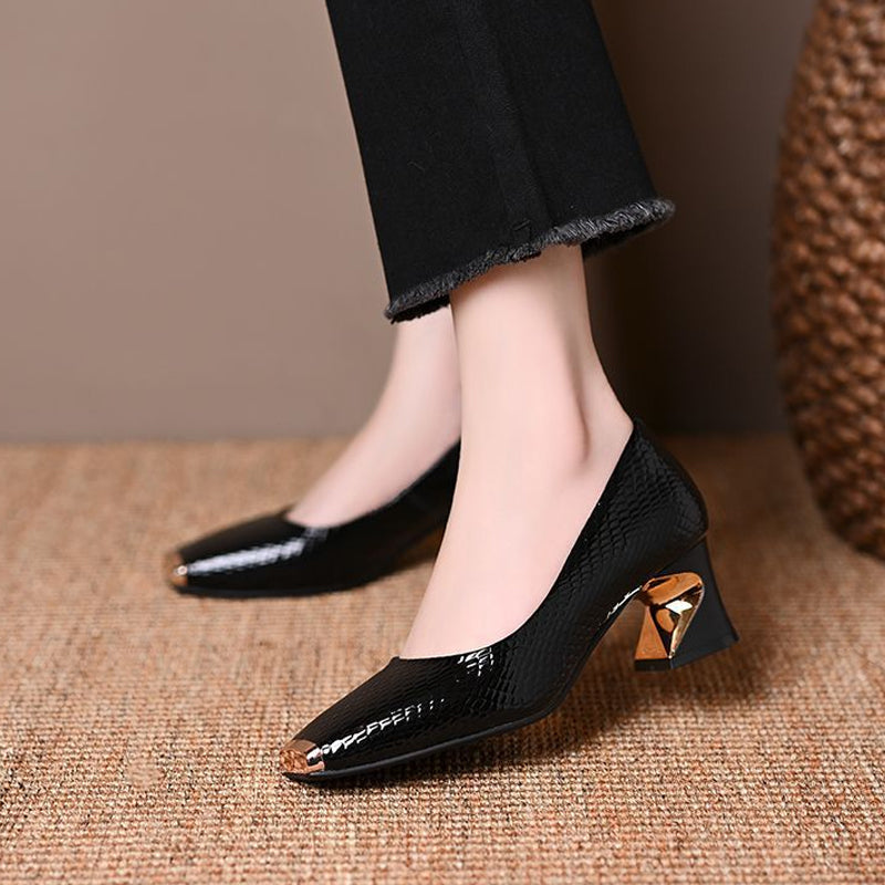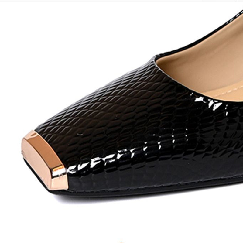 TALON CARRÉ STABLE - Le talon carré mi-hauteur offre une touche d'élégance en hauteur sans sacrifier la stabilité ni le confort. Il assure une base solide à chaque pas, rendant ces escarpins parfaits pour un port prolongé.